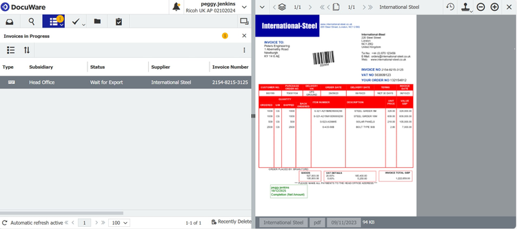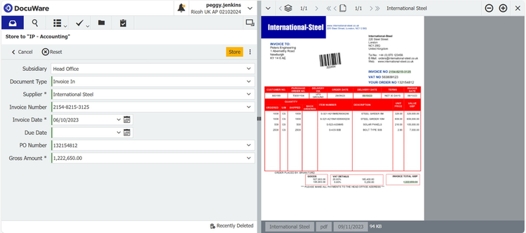 DocuWare uses intelligent document recognition to capture invoices and extract key data automatically, eliminating manual entry and reducing human error.